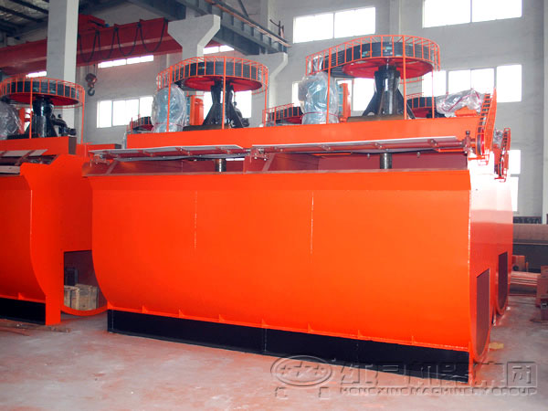 該浮選機由電動機三角代傳動帶動葉輪旋轉,產生離心作用形成負壓,一方面吸入充足的空氣與礦漿混合,一方面攪拌礦漿與藥物混合,同時細化泡沫,使礦物粘合泡沫之上,浮到礦漿面再形成礦化泡沫。調節(jié)閘板高度,控制液面,使有用泡沫被刮板刮出。